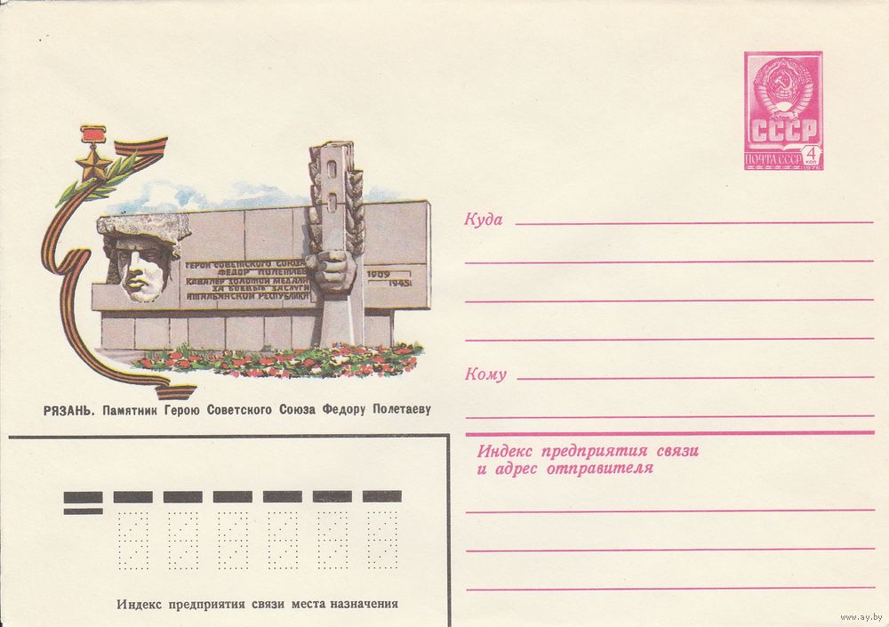 СССР 1982 МХК Рязань Памятник герою Федору Полетаеву (к3)