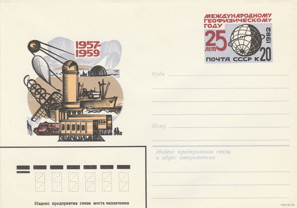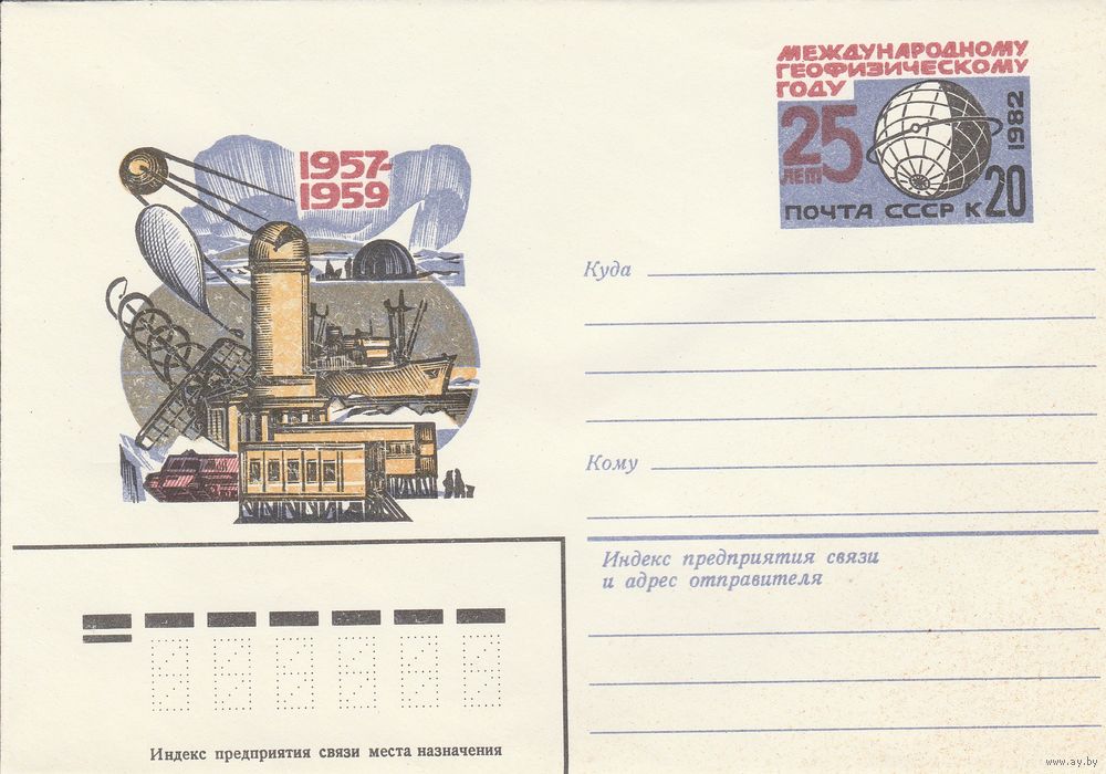 СССР 1982 МХК с ОМ 25 лет Международному геофизическому году (2 конверта различие в оттенках) (к3)
