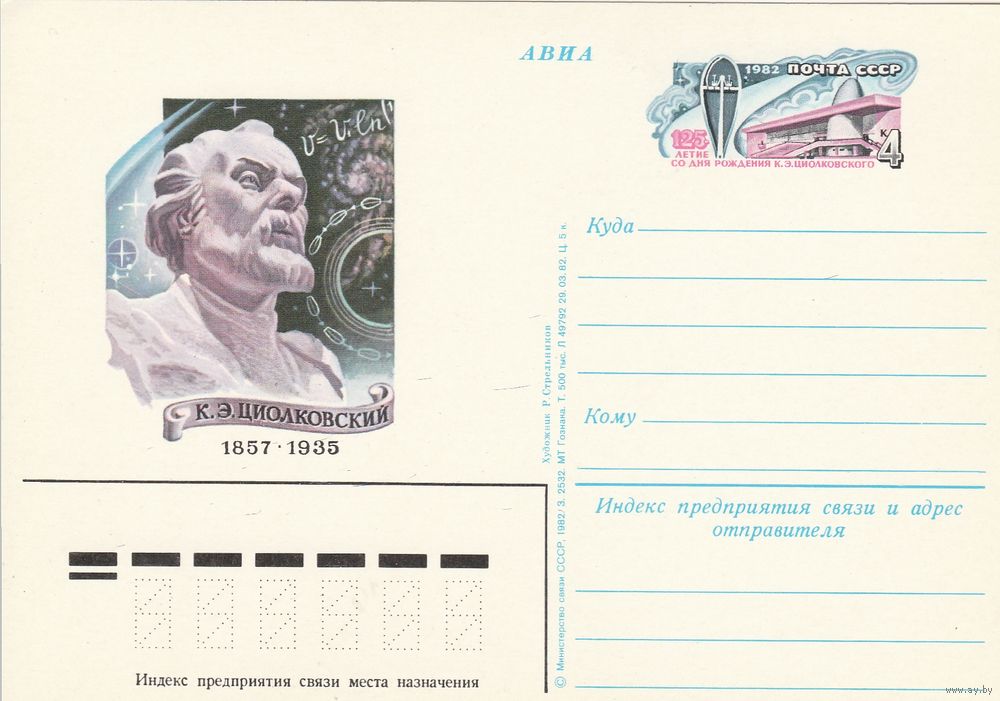 СССР 1982 ПК с ОМ 125-летие со дня рождения К. Э. Циолковского (к3а)
