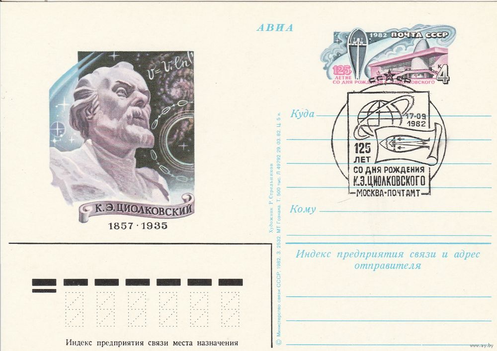 СССР 1982 ПК с ОМ со СГ 125-летие со дня рождения К. Э. Циолковского (к3)