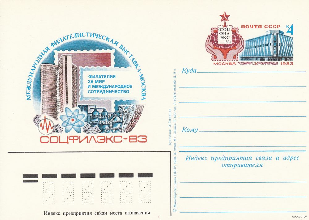 СССР 1983 ПК с ОМ Международная филателистическая выставка Соцфилэкс-83 в Москве (к3)