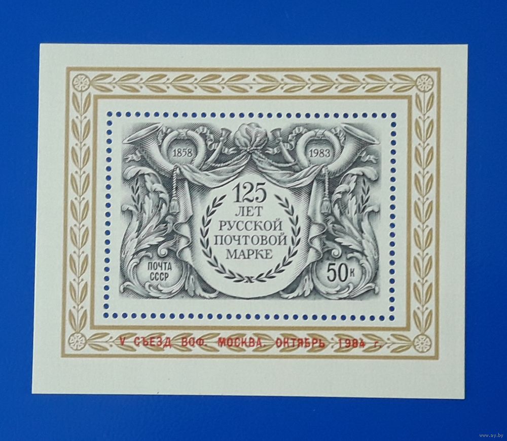СССР 1983г. Блок. 125 лет русской почтовой марке.+ типогр.надпечатка ВОФ.**