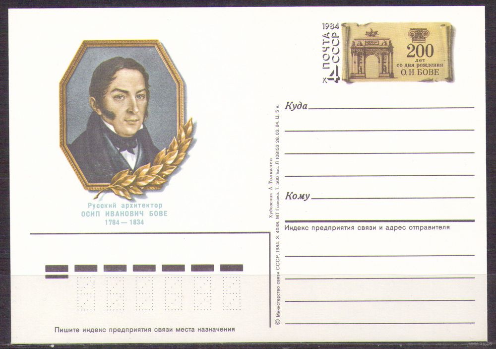 СССР 1984 ПК с ОМ 142. Архитектор Бове