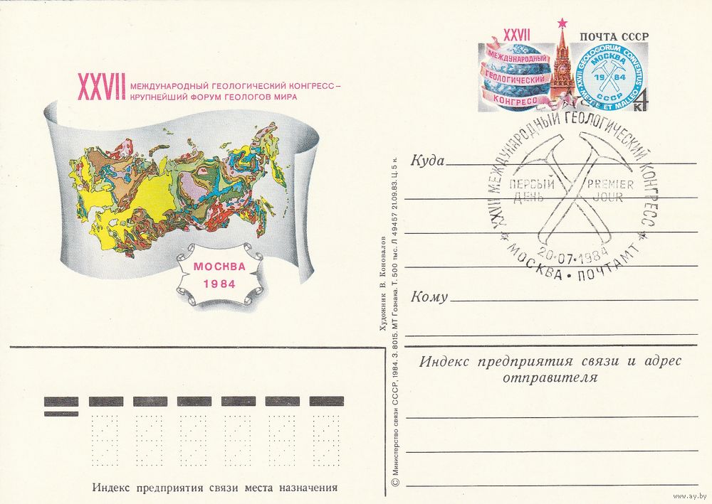 СССР 1984 ПК с ОМ со СГ XXVII Международный геологический конгресс, Москва (к3)