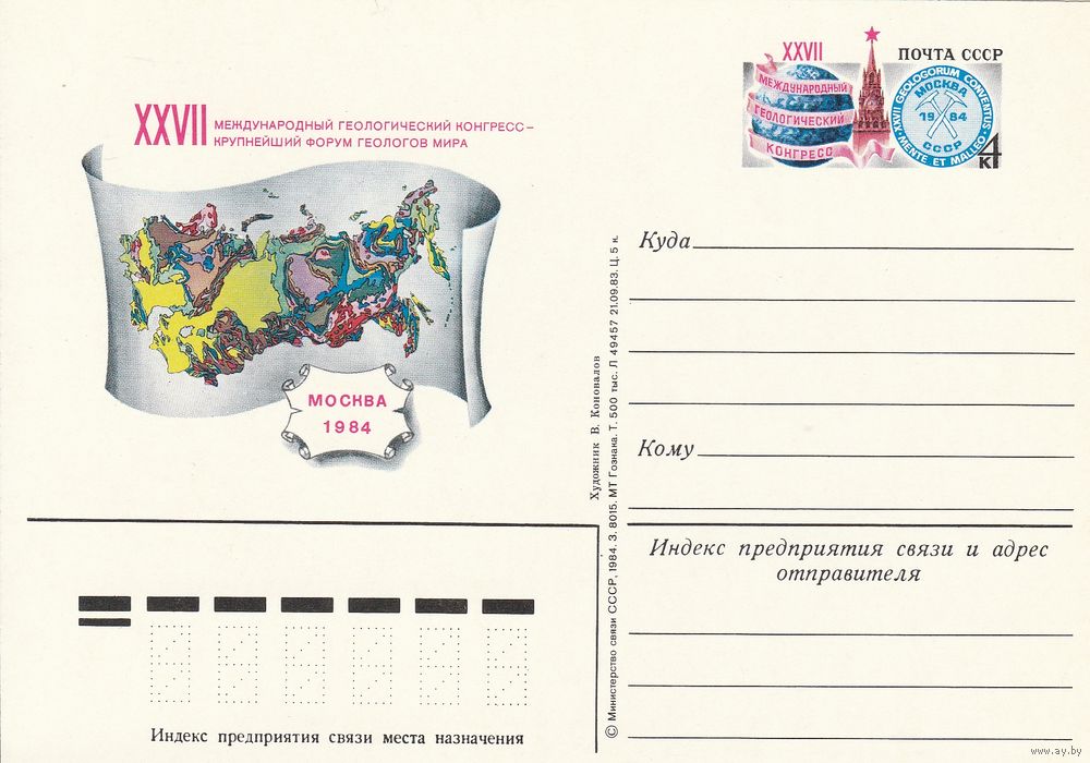 СССР 1984 ПК с ОМ XXVII Международный геологический конгресс, Москва (к3)