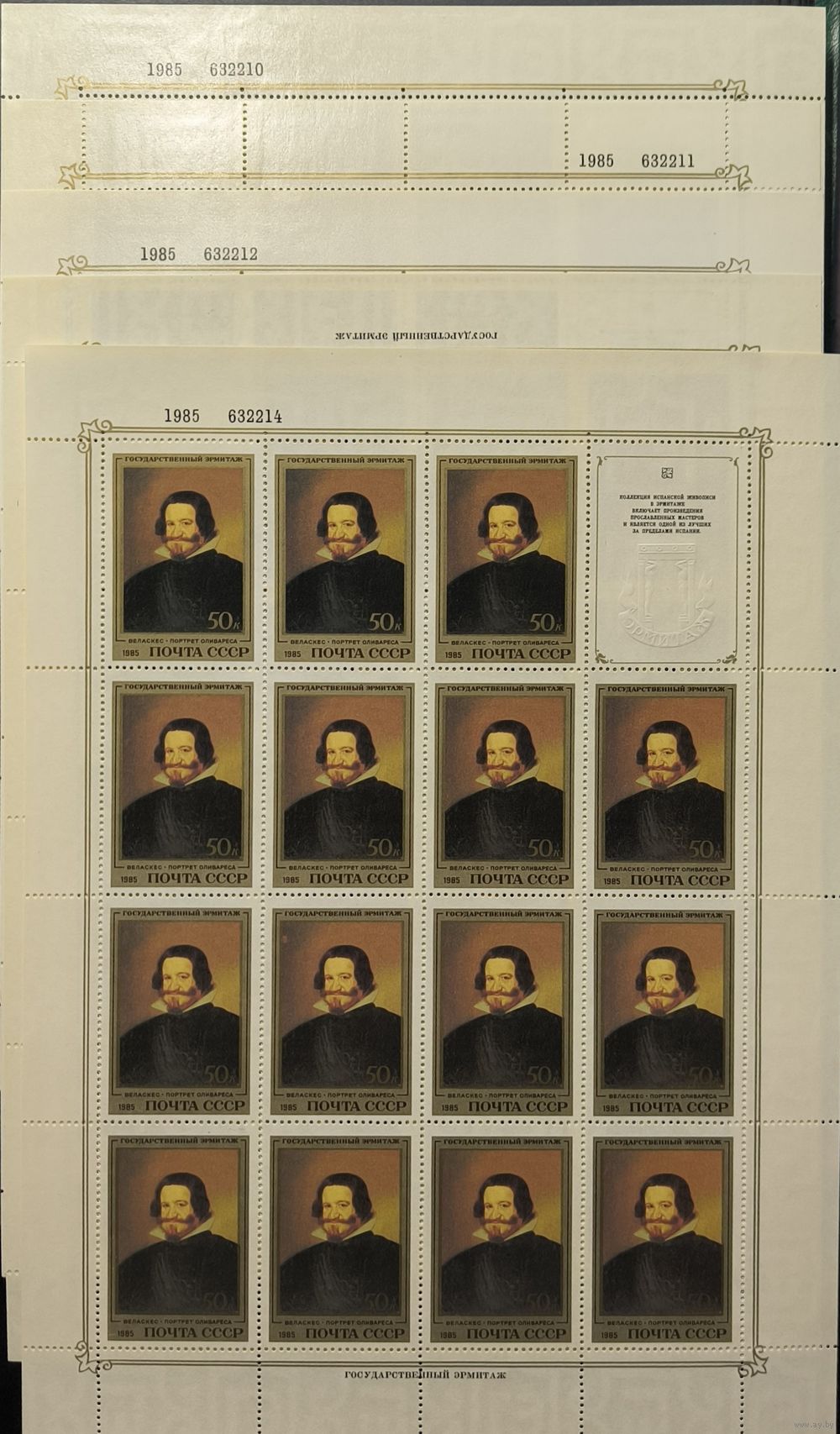 СССР. 1985. Эрмитаж (испанская живопись). Листы с купонами (4х4). Полная серия (Соловьев № 5597-5601).