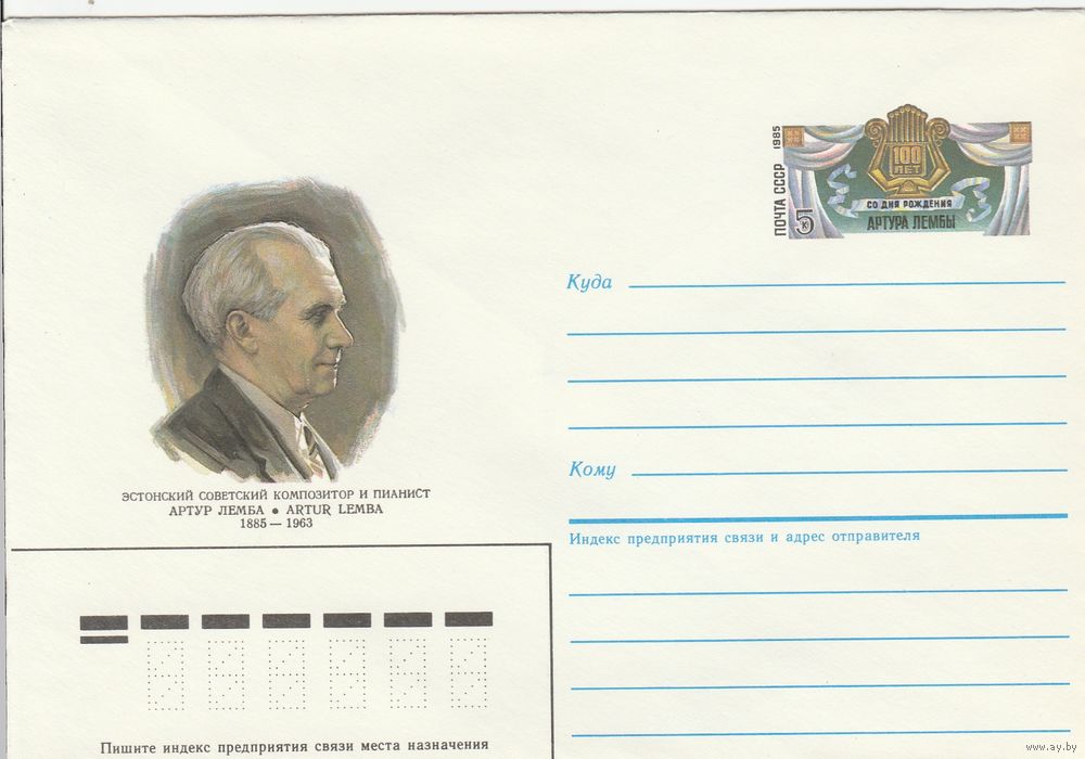 СССР 1985 МХК с ОМ 150 лет со дня рождения Артура Лембы (к3)