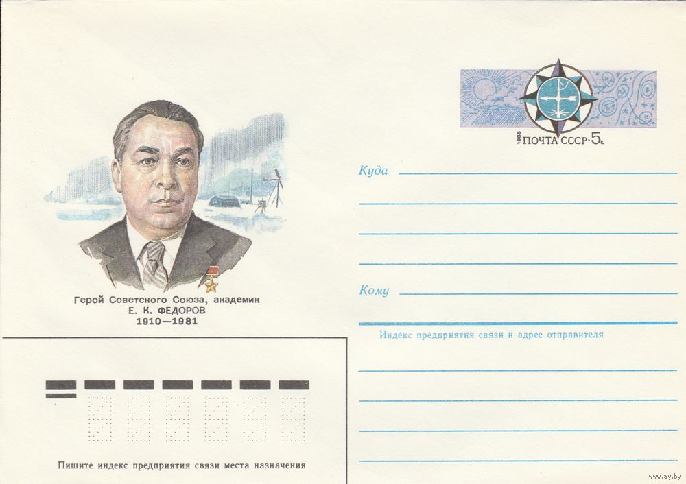 СССР 1985 МХК с ОМ 150 лет со дня рождения Е.К. Федорова (к3)