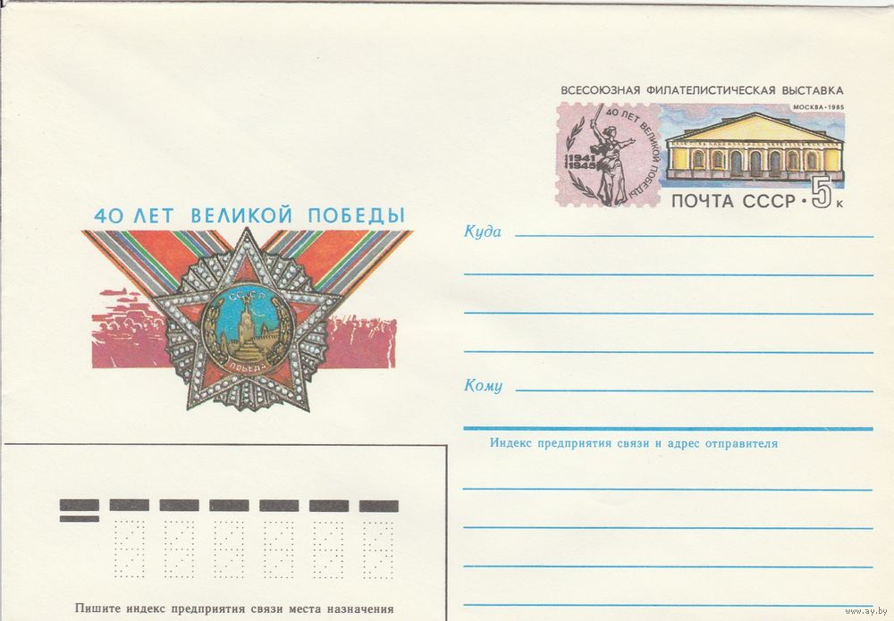 СССР 1985 МХК с ОМ Филателистическая выставка 40 лет Победы (к3)