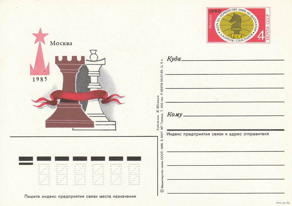 СССР 1985 ПК с ОМ Матч на первенство мира по шахматам в Москве (к3)