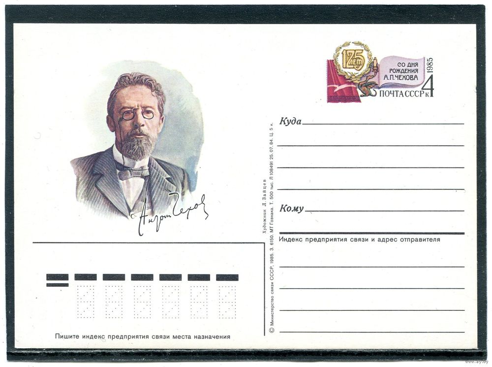 СССР 1985. ПК с ОС. А.П. Чехов, писатель