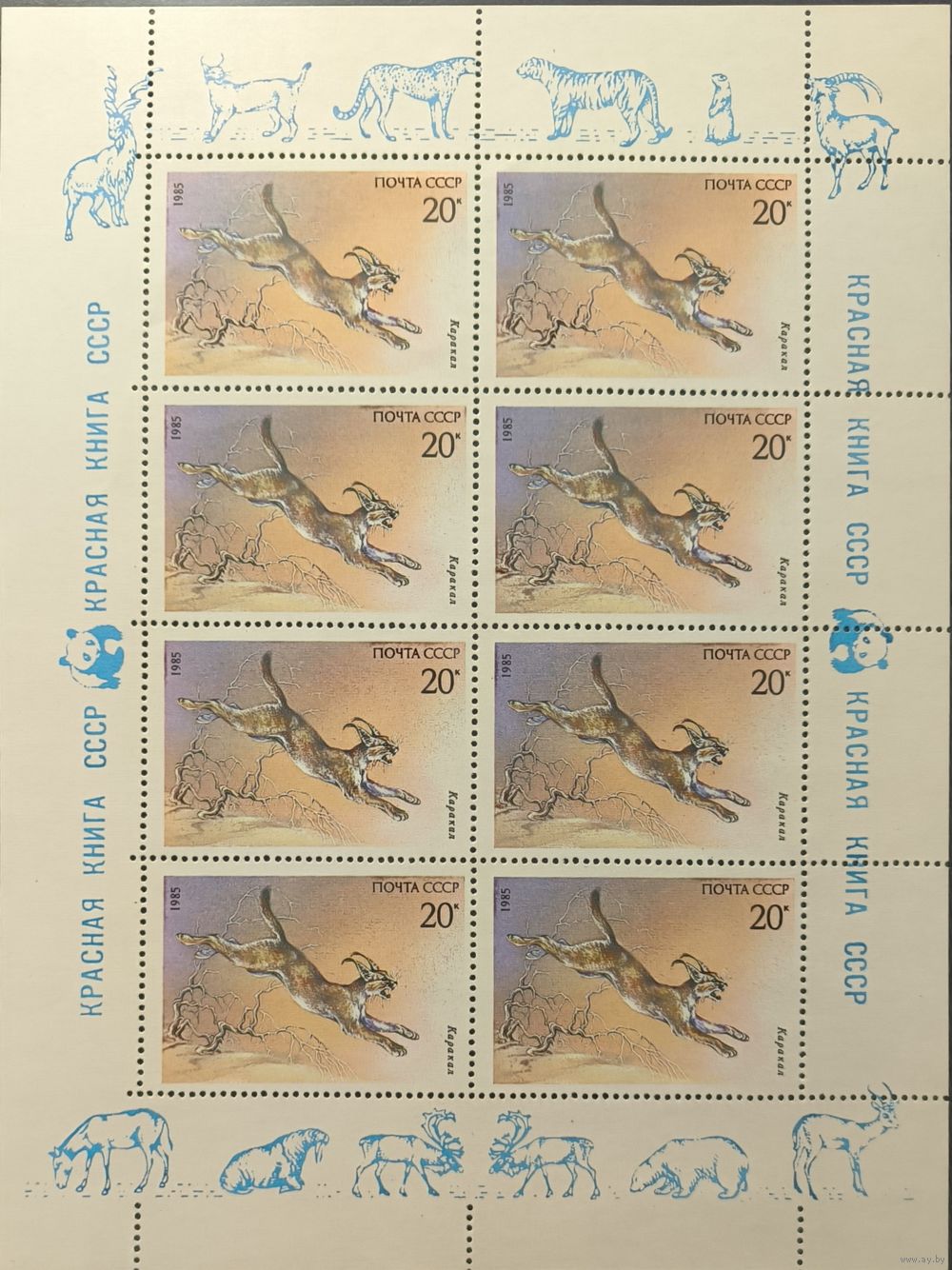 СССР. 1985. Животные "Красной книги". Малый лист (2х4) (Соловьев № 5661).
