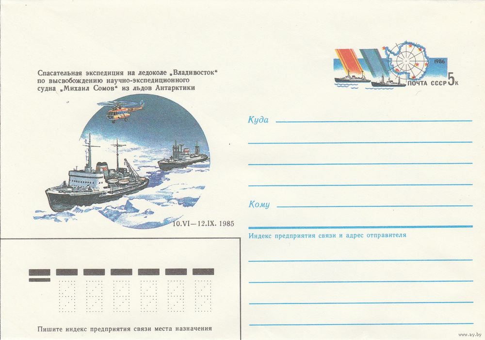 СССР 1986 МХК с ОМ Спасательная экспедиция судна М. Сомов (к3)