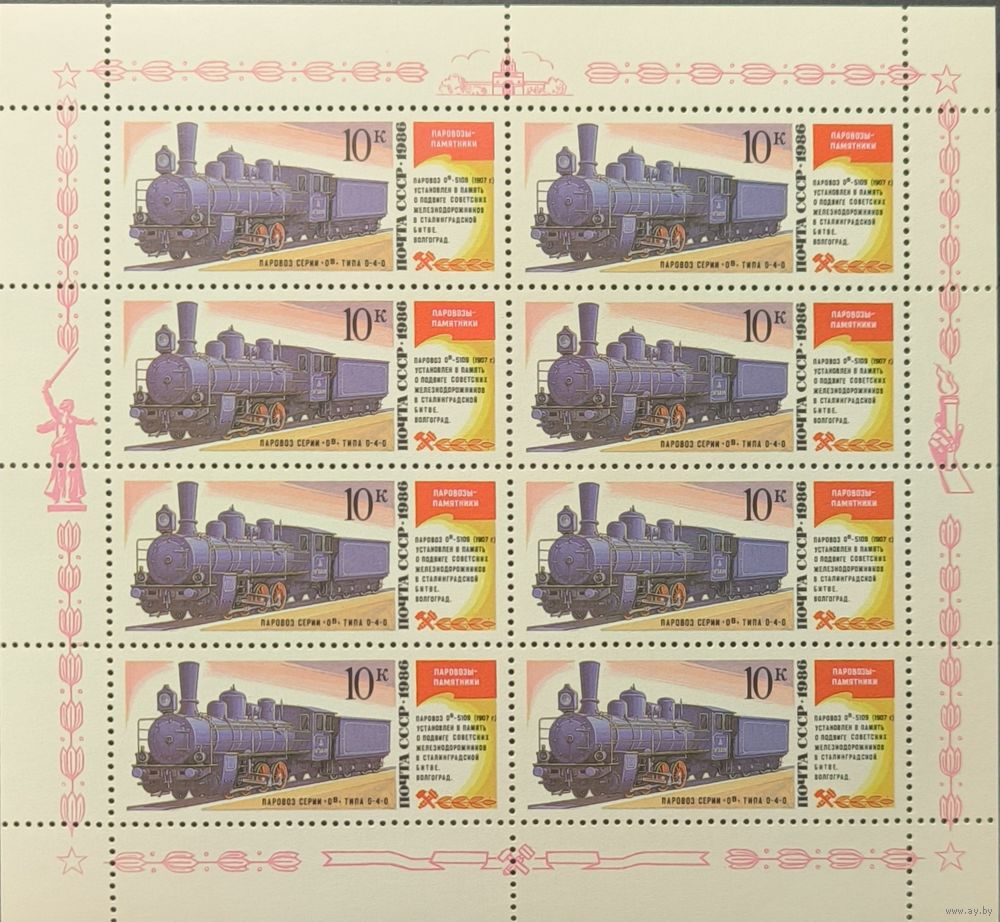 СССР. 1986. Паровозы-памятники. Малый лист (2х4) (Соловьев № 5772).