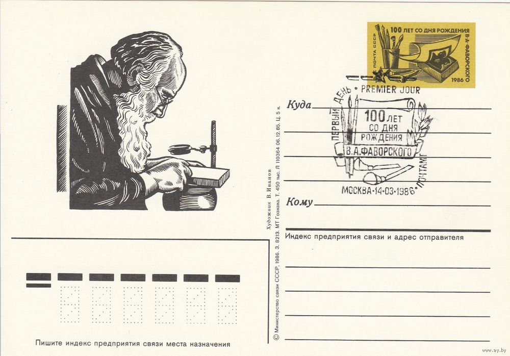 СССР 1986 ПК с ОМ со СГ 100-летие со дня рождения графика и живописца В. А. Фаворского (к3)