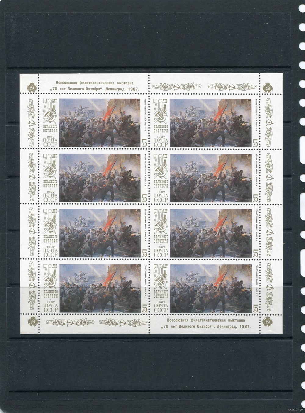 СССР 1987. 70 лет Октября. Малый лист с надпечаткой Филателистическая выставка. Ленинград