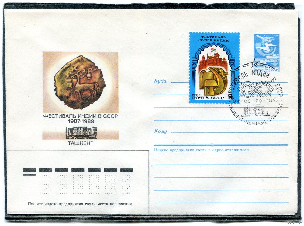 СССР 1987. ХМК. Конверт с СГ. Фестиваль Индии в СССР. Ташкент. Гашение Ташкент 1987