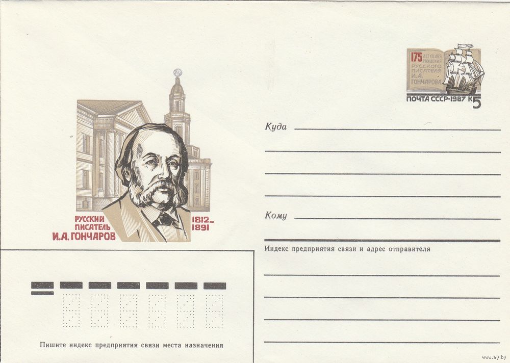 СССР 1987 МХК с ОМ 175 лет со дня рождения И.А. Гончарова (к3)