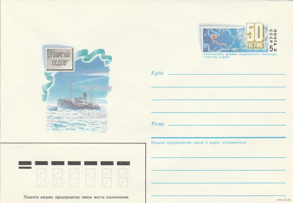 СССР 1987 МХК с ОМ 50 лет героического дрейфа ледокола Георгий Седов (к3)