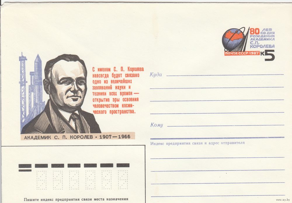 СССР 1987 МХК с ОМ 80 лет со дня рождения С.П. Королева (к3)