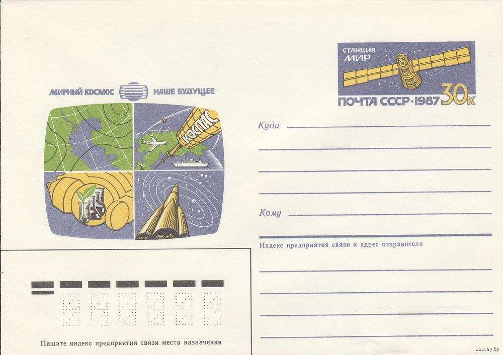 СССР 1987 МХК с ОМ Мирный космос - наше будущее (к3)