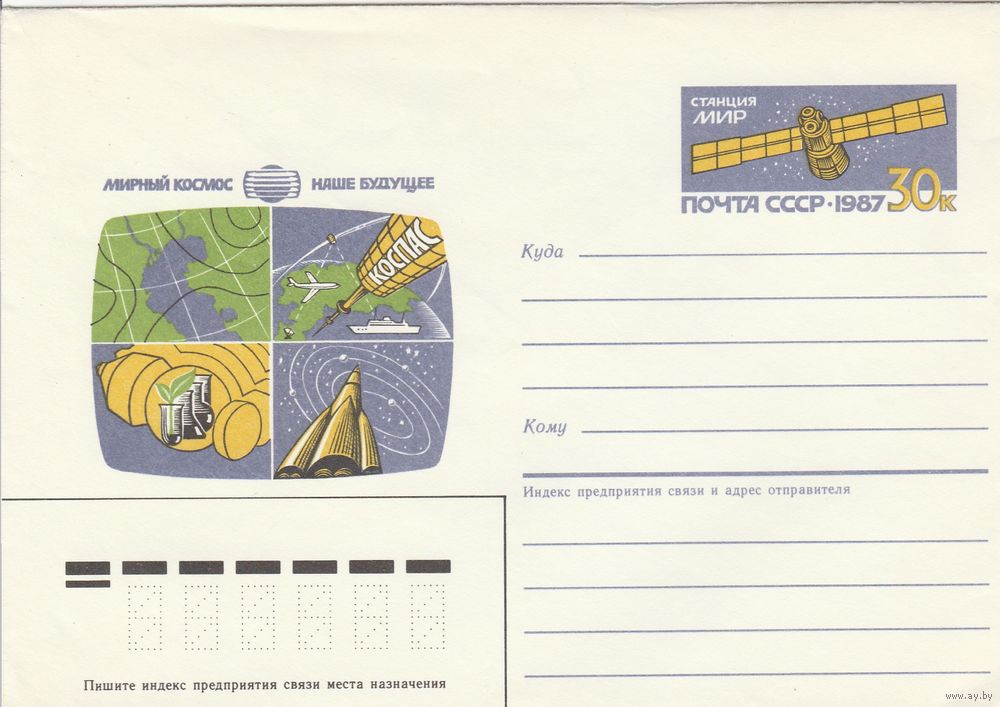 СССР 1987 МХК с ОМ Мирный космос Станция МИР (к2)