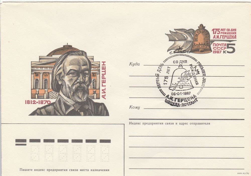 СССР 1987 МХК с ОМ со СГ 175 лет со дня рождения Герцена (к2)