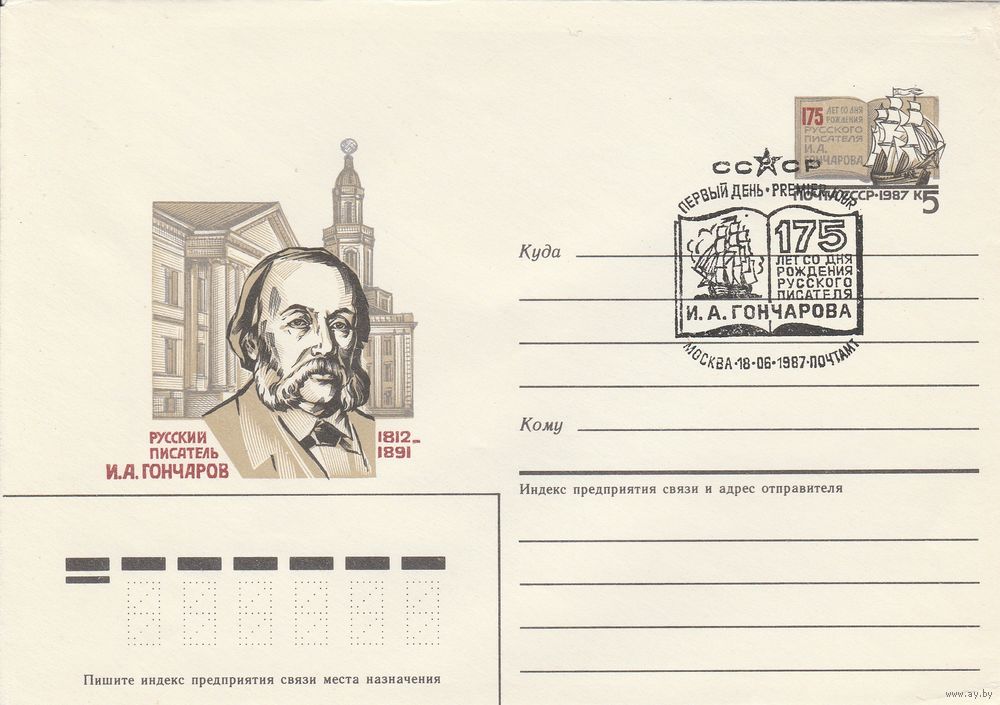 СССР 1987 МХК с ОМ со СГ 175 лет со дня рождения Гончарова (к2)