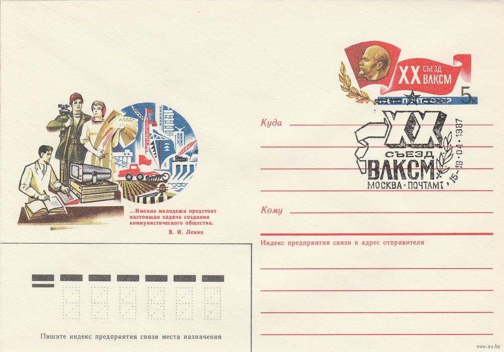 СССР 1987 МХК с ОМ со СГ ХХ съезд ВЛКСМ (к2)