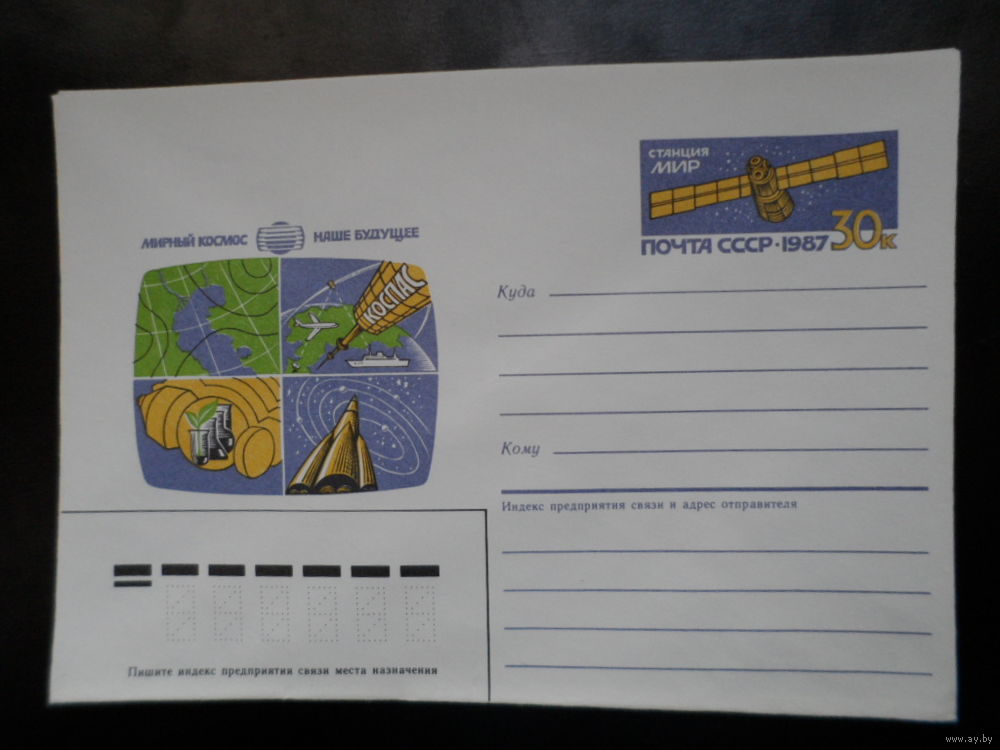 СССР 1987 МК с ОМ Станция "МИР" мирный космос
