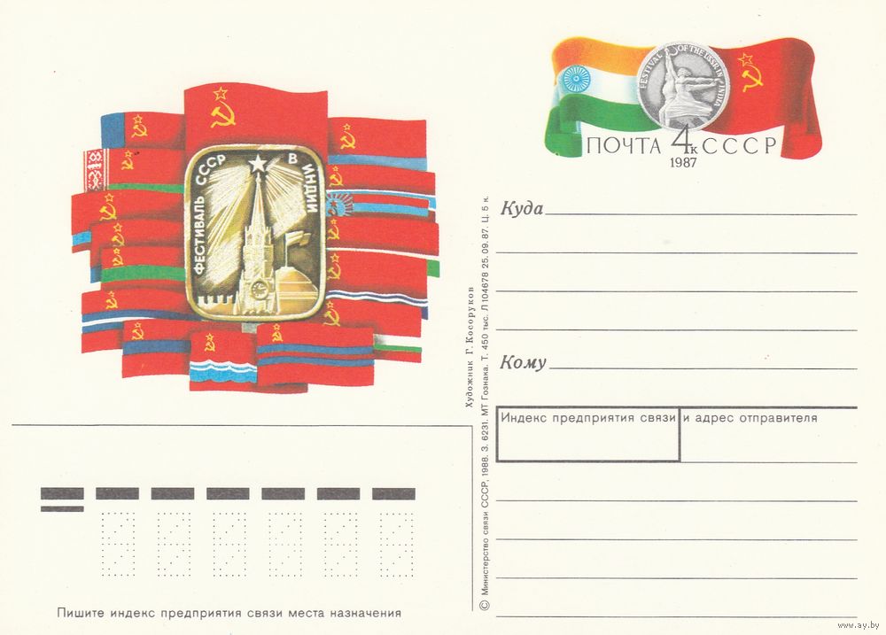 СССР 1987 ПК с ОМ Фестиваль СССР в Индии (к3)