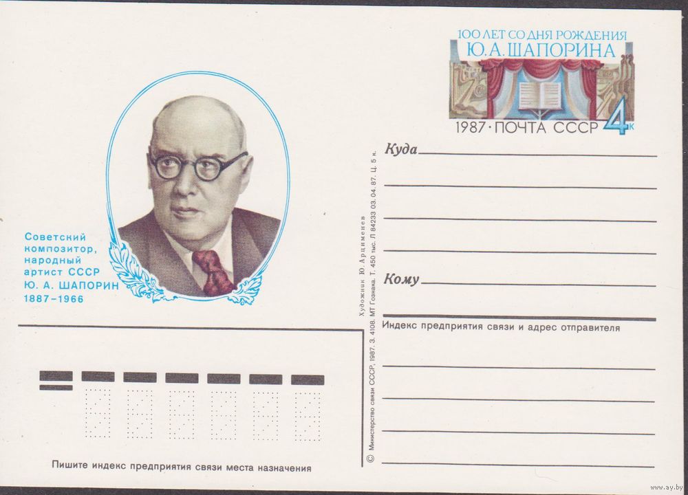 СССР 1987г. ПК с ОМ 170 Ю.Шапорин