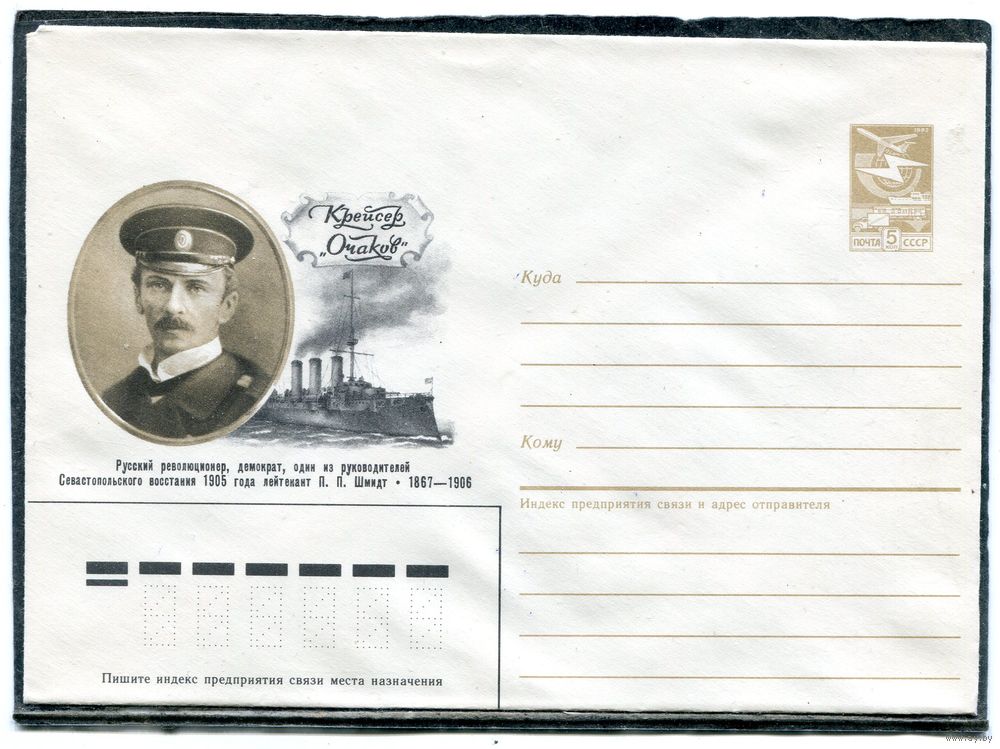 СССР 1988. ХМК. Конверт. Лейтенант П.П. Шмидт. Крейсер Очаков