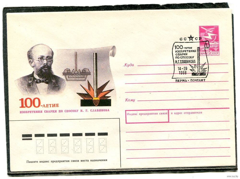 СССР 1988.ХМК. Конверт с СГ. 100-летие изобретения сварки по способу Славянова. Гашение Пермь 1988