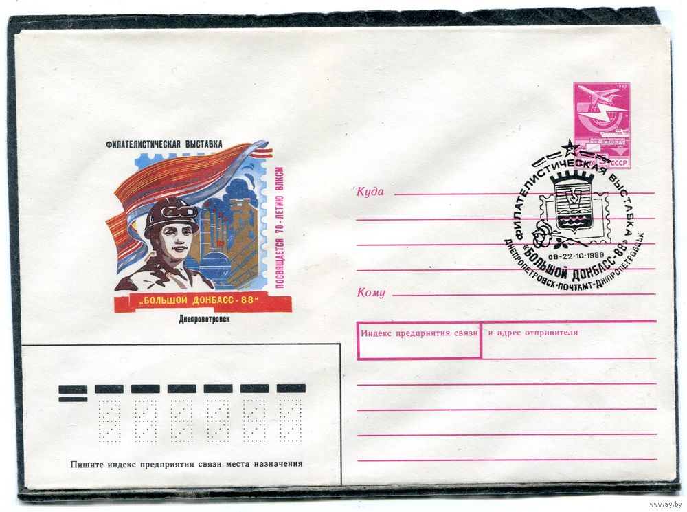 СССР 1988. ХМК. Конверт с СГ. Филвыставка Большой Донбасс. Гашение Днепропетровск 1988