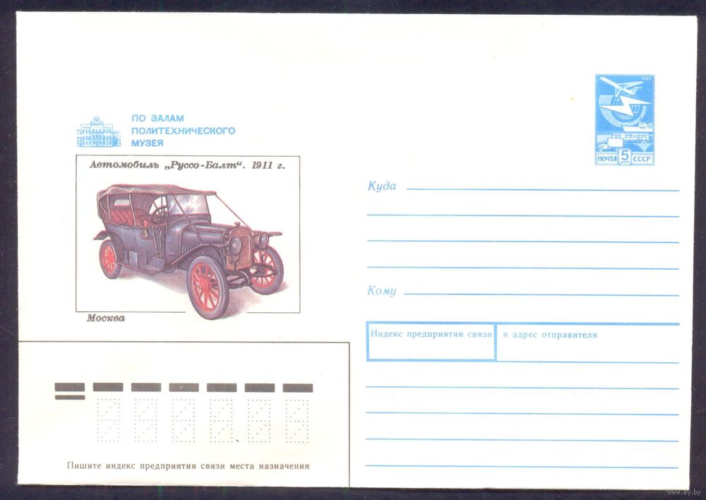 СССР 1988 конверт Политехнический музей автомобиль Руссо-Балт