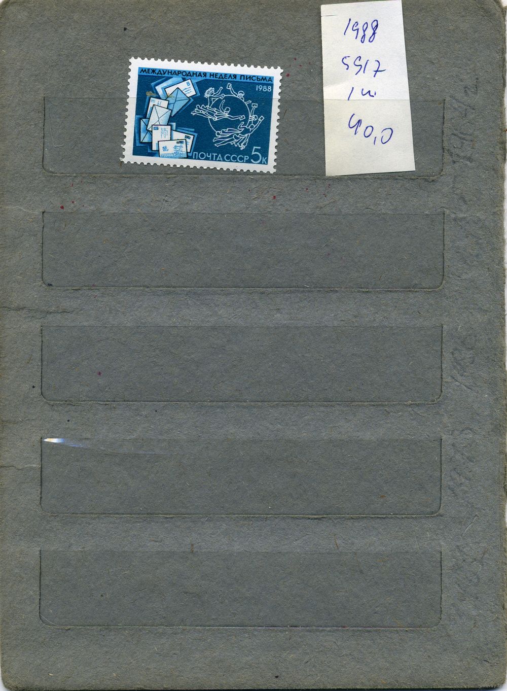 СССР, 1988, Междун НЕДЕЛЯ ПИСЬМА, серия 1м, ( на "СКАНЕ" справочно приведены номера и цены по ЗАГОРСКОМУ)