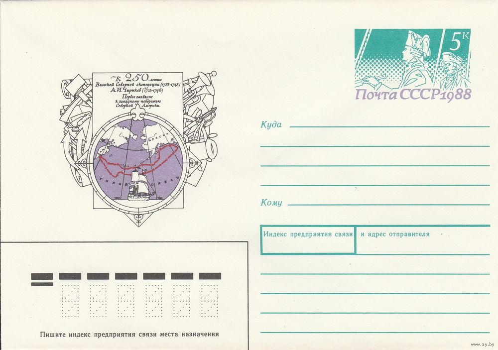 СССР 1988 МХК с ОМ 250 лет Великой Северной экспедиции Чириков (к3)
