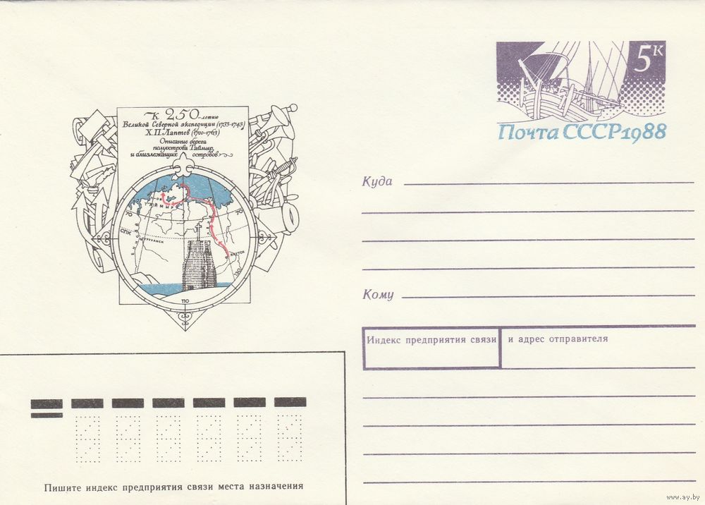 СССР 1988 МХК с ОМ 250 лет Великой Северной экспедиции Лаптев (к3)