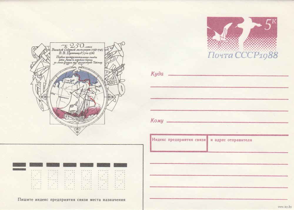 СССР 1988 МХК с ОМ 250 лет Великой Северной экспедиции Прончищев (к3)