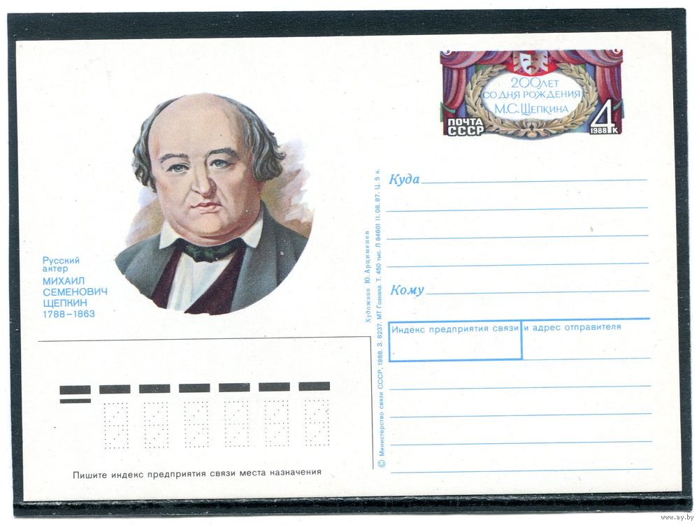 СССР 1988. ПК с ОМ. М.С. Щепкин, актер