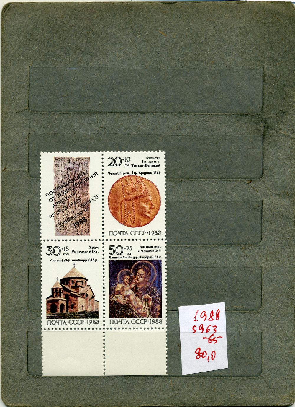 СССР, 1988, РЕЛИКВИИ АРМЯН НАРОДА СЦЕПКА , серия 3м и купон, ( на "СКАНЕ" справочно приведены номера и цены по ЗАГОРСКОМУ)