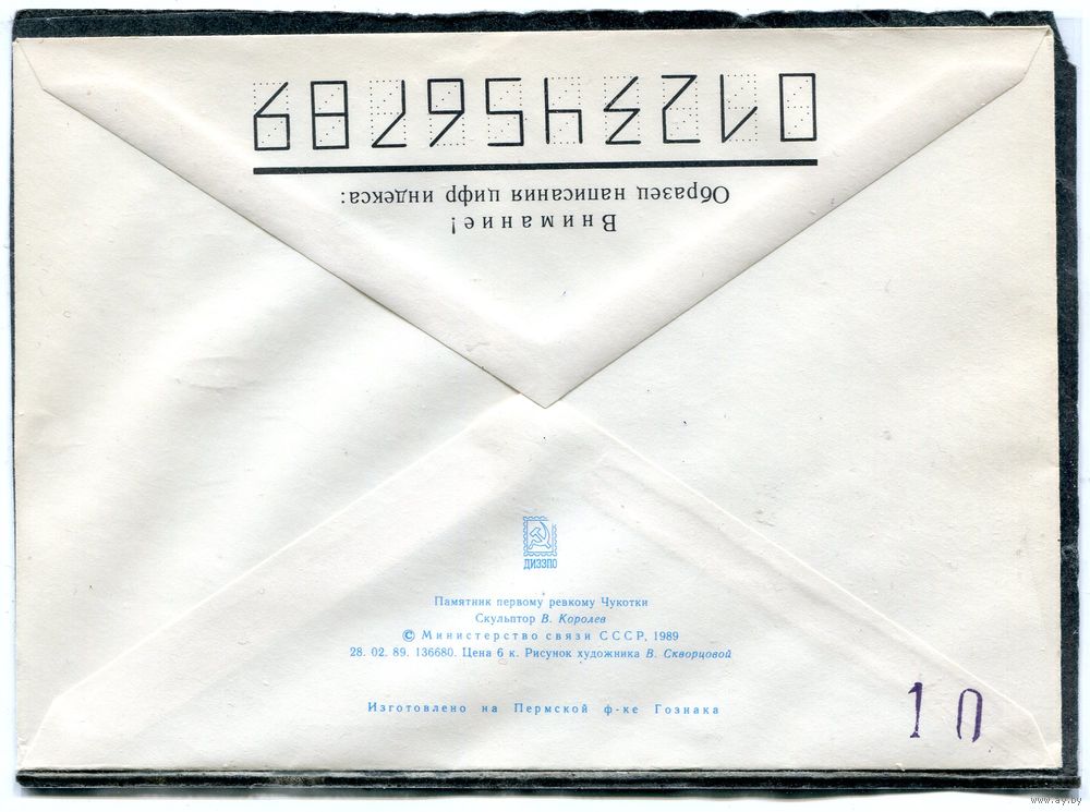 СССР 1989. ХМК. Конверт с СГ. 100 лет городу Анадырь. Памятник первому ревкому Чукотки. Гашение Анадырь 1989