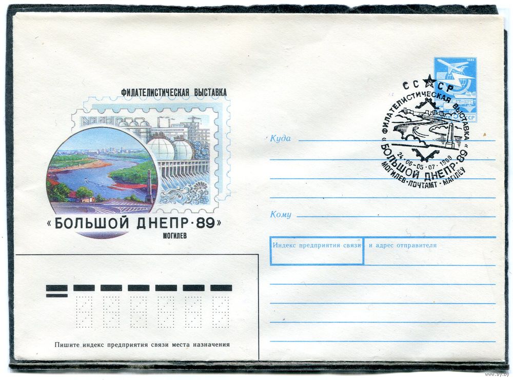 СССР 1989. ХМК. Конверт с СГ. ФЙилвыставка Большой Днепр-89. Гашение Могилев 1989