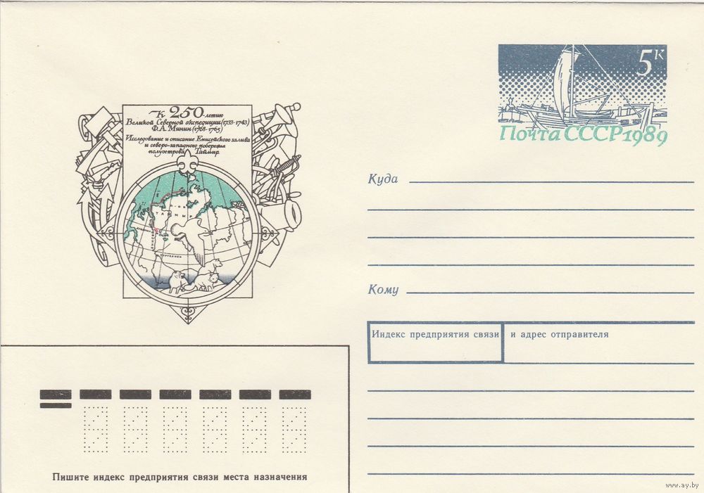 СССР 1989 МХК с ОМ 250 лет Великой Северной экспедиции Минин (к3)