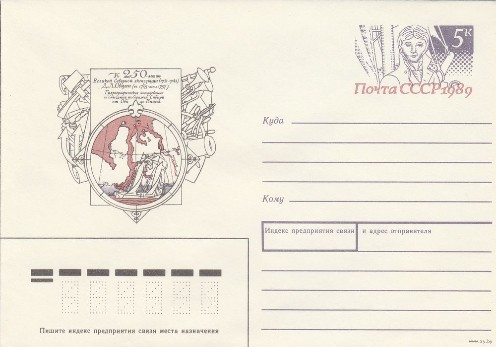 СССР 1989 МХК с ОМ 250 лет Великой Северной экспедиции Овцын (к3)