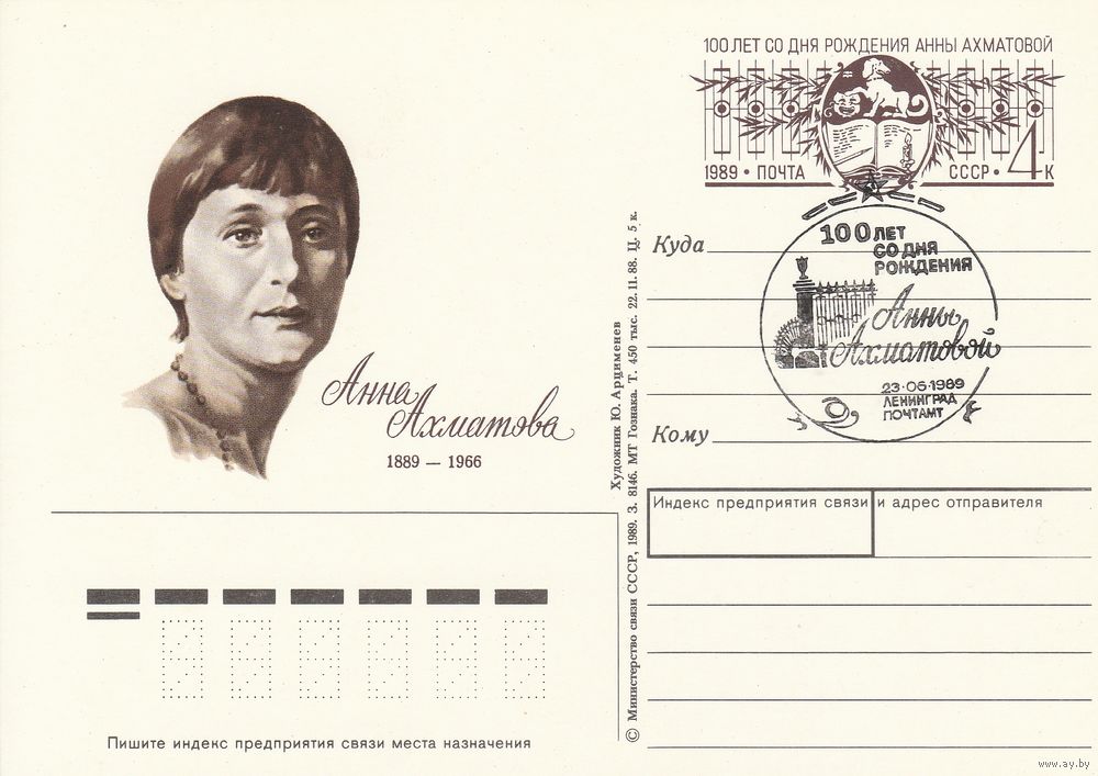 СССР 1989 ПК с ОМ со СГ 100-летие со дня рождения поэтессы А. А. Ахматовой (к3)