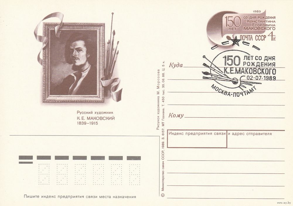 СССР 1989 ПК с ОМ со СГ 150-летие со дня рождения художника К. Е. Маковского (к3)
