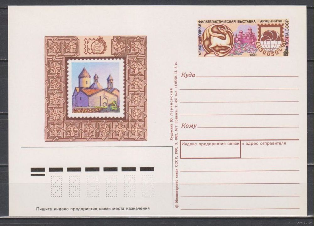СССР. 1990. 05.11. Филателистическая выставка Армения-90. ПК с ОМ 216. (С)
