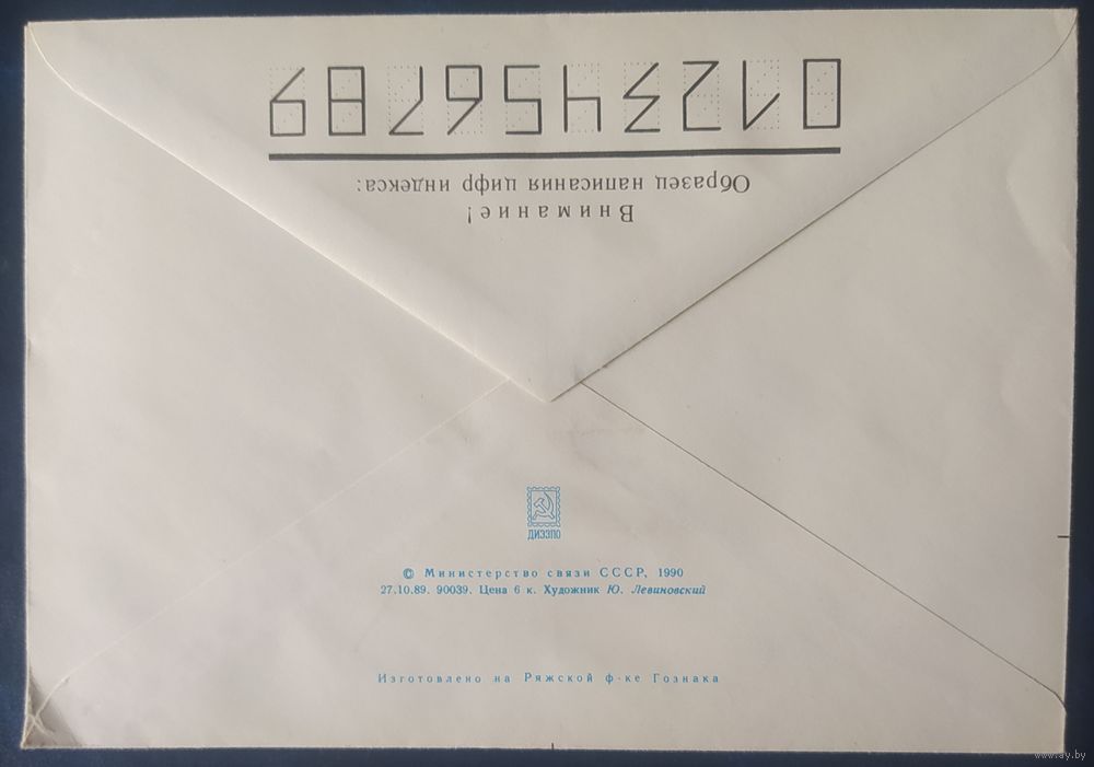 СССР 1990 ХМ конверт Минск, площадь победы.